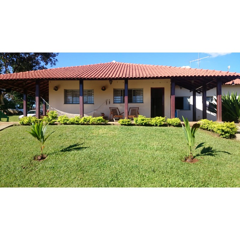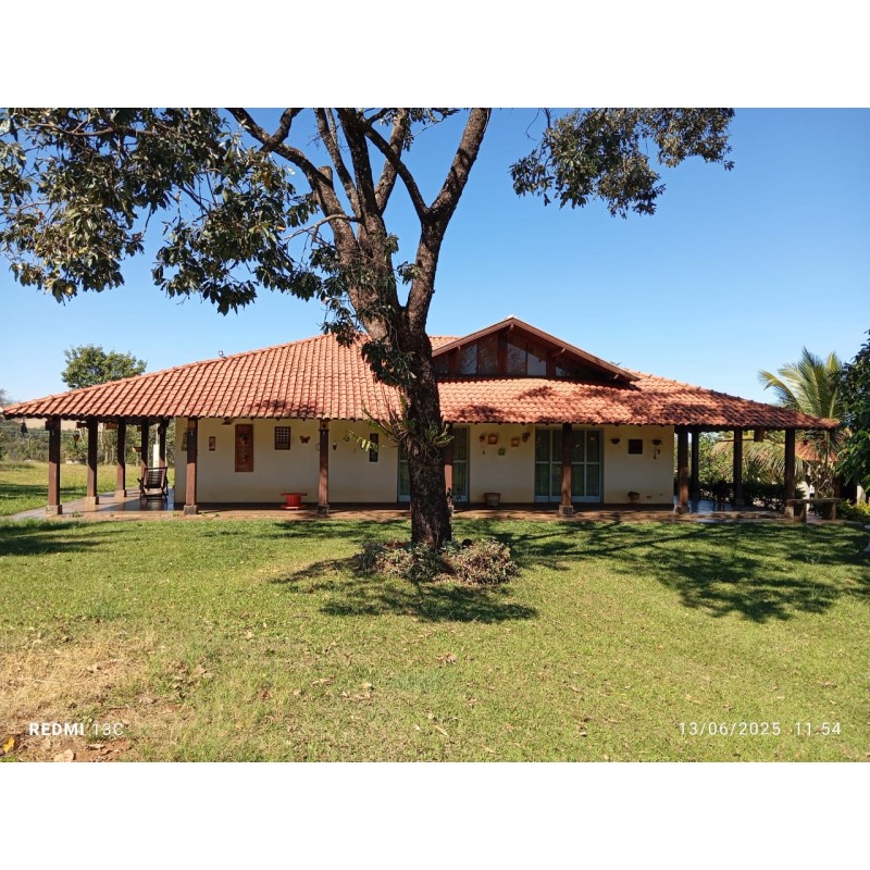 • Casa sede avarandada, gramada e cercada com alambrado