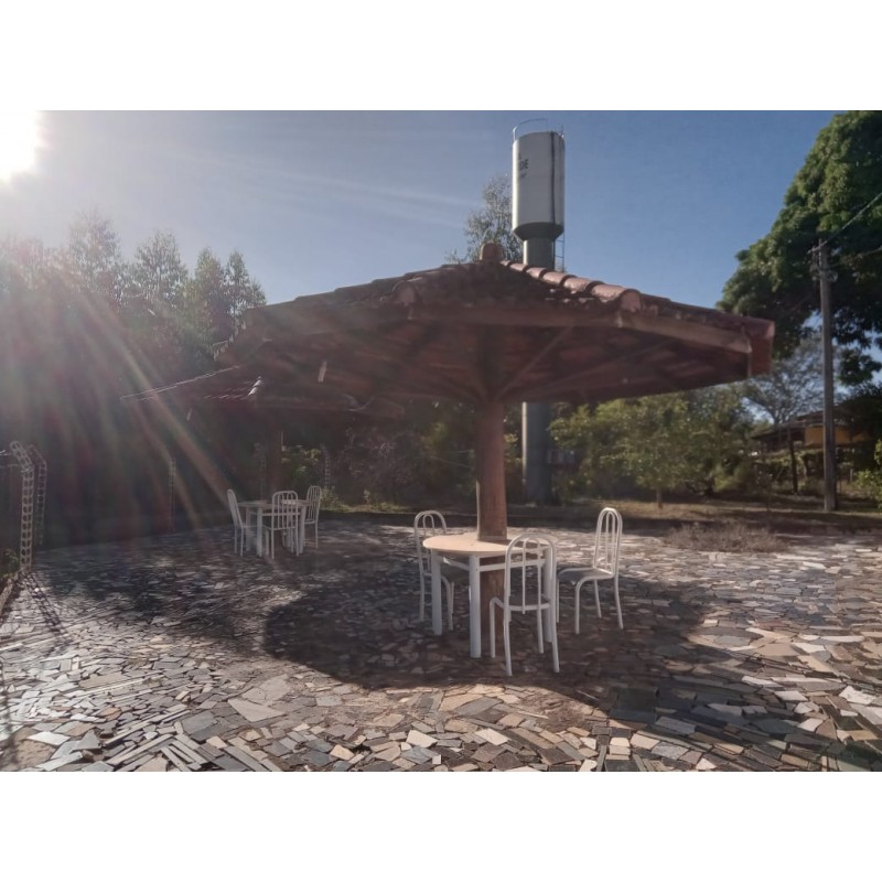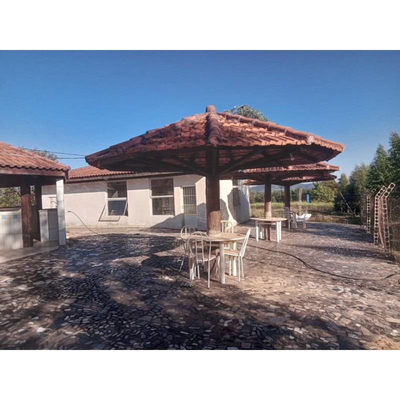 casa sede, com varios quioskes, piscina, salão de festa, alojamento